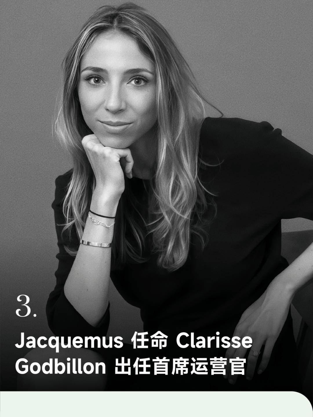 法国时尚品牌 Jacquemus 宣布任命 Clarisse Godbillon 为首席运营官,负责运营与财务事务。该任命是今年 3 月履新首席执行官的 Sarah Benady 组建管理团队的重要一步。Clarisse Godbillon 此前任职于巴黎品牌 Lemaire,自 2023 年起担任首席运营官职位。此前曾在咨询公司 Messier Maris & Associés 从事并购业务,随后加入 JC Decaux,负责集团外延式增长事务,并于 2018 年开始为设计师品牌提供咨询服务。