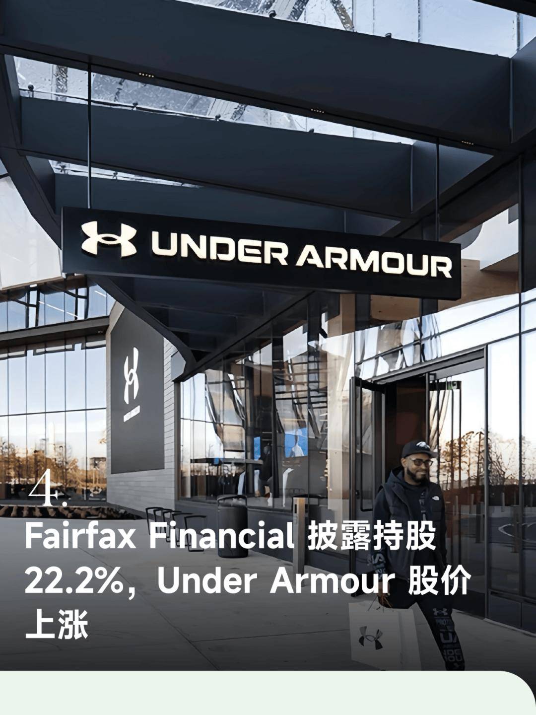 在 Fairfax Financial 披露大幅增持股份的消息后,运动服饰公司 Under Armour 1 月 6 日股价出现明显上涨。根据提交的监管文件,Fairfax Financial 已持有 Under Armour 约 4196 万股 A 类股票,占公司已发行 A 类股份的 22.2%。消息公布后,Under Armour 股价在盘后交易中一度上涨约 4.2%。文件显示,Fairfax Financial 表示此次持股主要出于投资目的,并不排除在未来根据市场情况和其他因素继续增持或调整持仓。